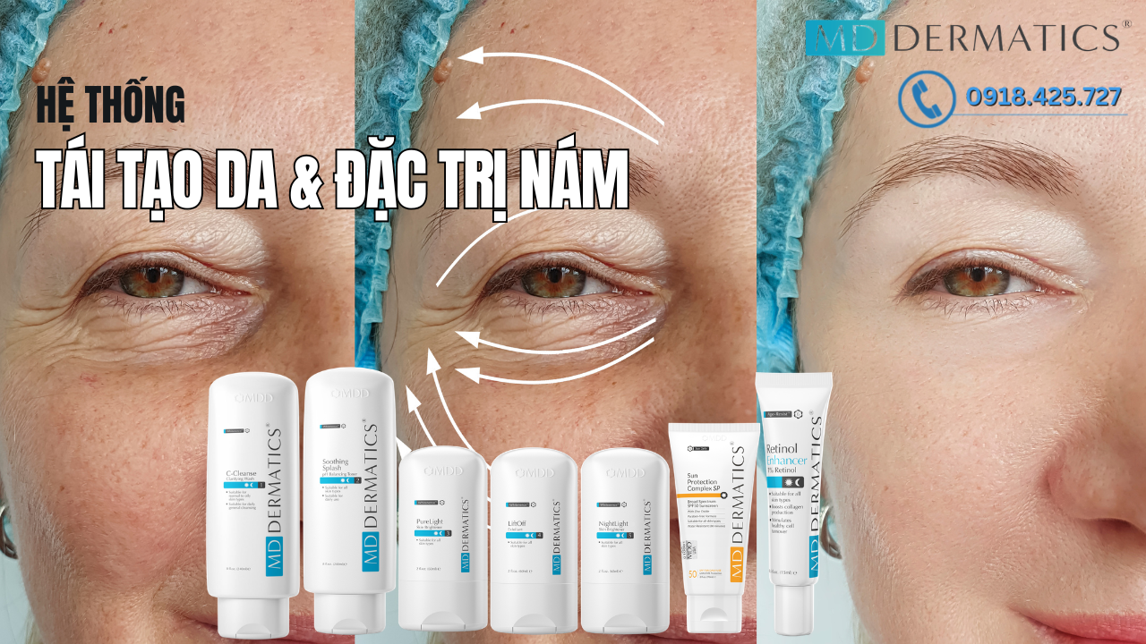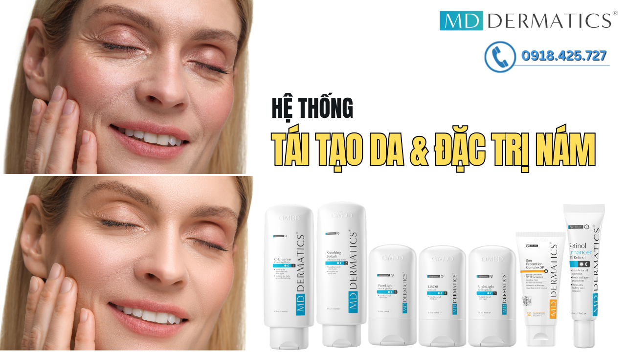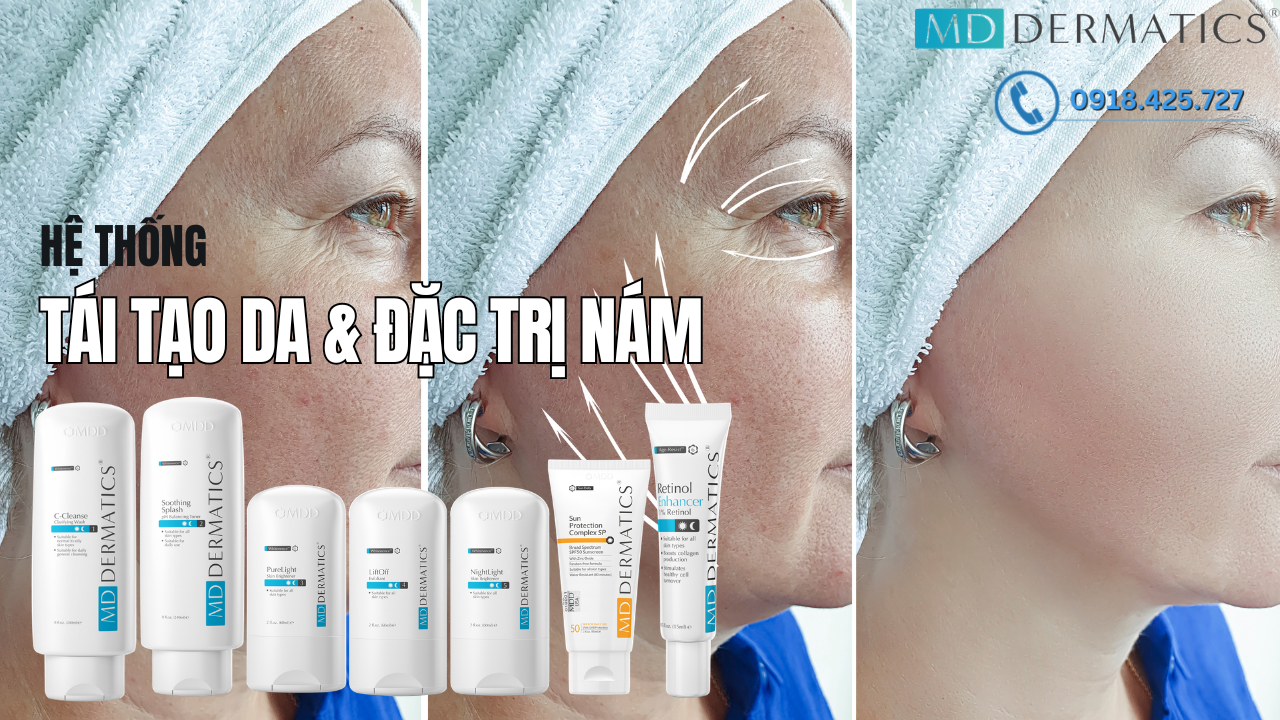 Bộ sản phẩm tái tạo da MD Dermatics được xây dựng theo liệu trình chăm sóc da khoa học với các bước làm sạch – tái tạo – phục hồi – bảo vệ. Sự kết hợp của nhiều hoạt chất điều trị giúp cải thiện cấu trúc da, hỗ trợ trẻ hóa và mang lại làn da khỏe mạnh hơn.